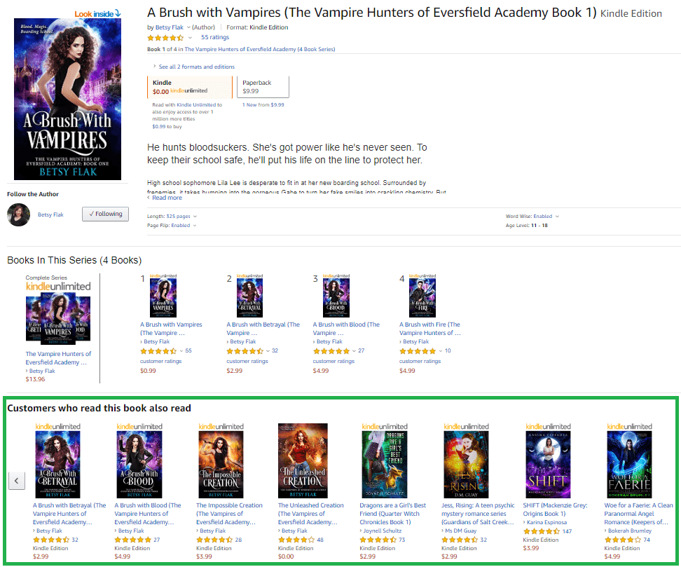 - Example shown below: Also Read's (located in green rectangle) for A Brush with Vampires (The Vampire Hunters of Eversfield Academy: Book One).